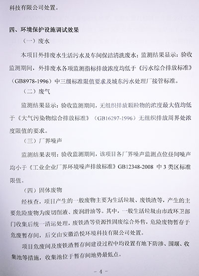 環保檢測報告公示及環評意見
